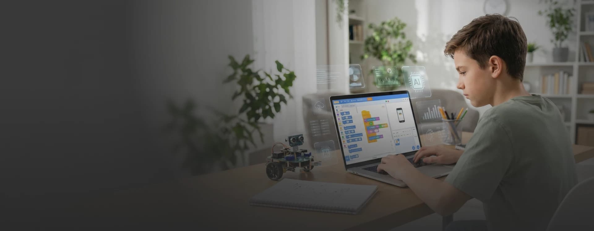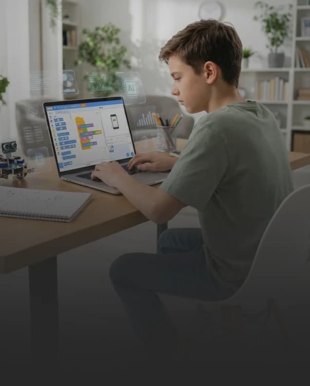 O aluno desenvolve raciocínio computacional, cria jogos, entende o funcionamento de sistemas digitais, progride para linguagens de código como Python, explora automação, machine learning, IoT e entra nos conceitos modernos de blockchain e arquitetura da economia digital. Cada eixo foi projetado para preparar o estudante para atuar em um mundo altamente tecnológico, com visão prática, pensamento crítico e domínio de ferramentas que impulsionam inovação e resolução de problemas reais.